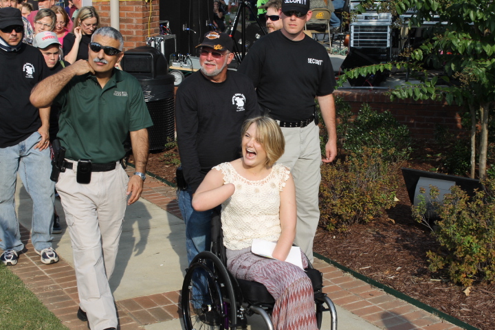 As you know; Aimee Copeland contracted necrotizing fasciitis while riding a homemade zip-line earlier this year. She has had both hands, her left leg and her right foot amputated to save her life. And after the hospitalization and rehab you can tell she had lots of spirit and was loving life. Copeland said to the crowd “It’s great to see so many familiar faces here. This is my first trip back to West Georgia and I’m just thrilled to be here. I have a lot of friends here and I’m sure there will be many more trips back.”