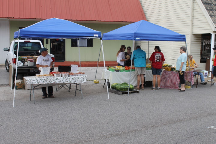 Every Thursday now through late August, a portion of Choccolocco Street in Oxford Alabama will be closed down so a downtown festival and farmers market can take place. Downtown After Sundown happens from 4-7 pm every Thursday in downtown Oxford. A farmers market featuring several vendors selling produce are there. Rainbow Omega is there selling plants. Other vendors are there selling products and food/drinks. And there is also some live music! Here are some pictures from the event on a Thursday evening!