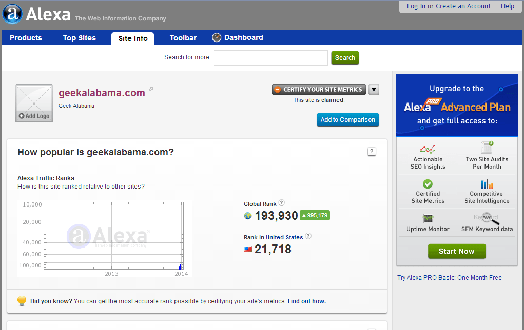 Geek Alabama currently has high Alexa Ratings and a HubSpot Marketing Grade. Don’t believe us, check out the pictures below!