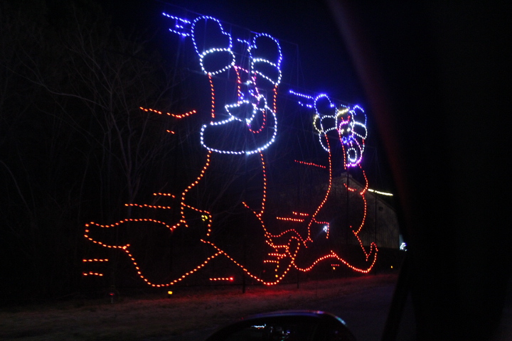 The attraction is over 3 miles long, and is open every night during the Christmas season. The attraction was nice, but part of the route was extremely bumpy! There were numerous potholes and bumps that made looking at the Christmas lights a little hard. And many vehicles had to swerve to avoid potholes and bumps.